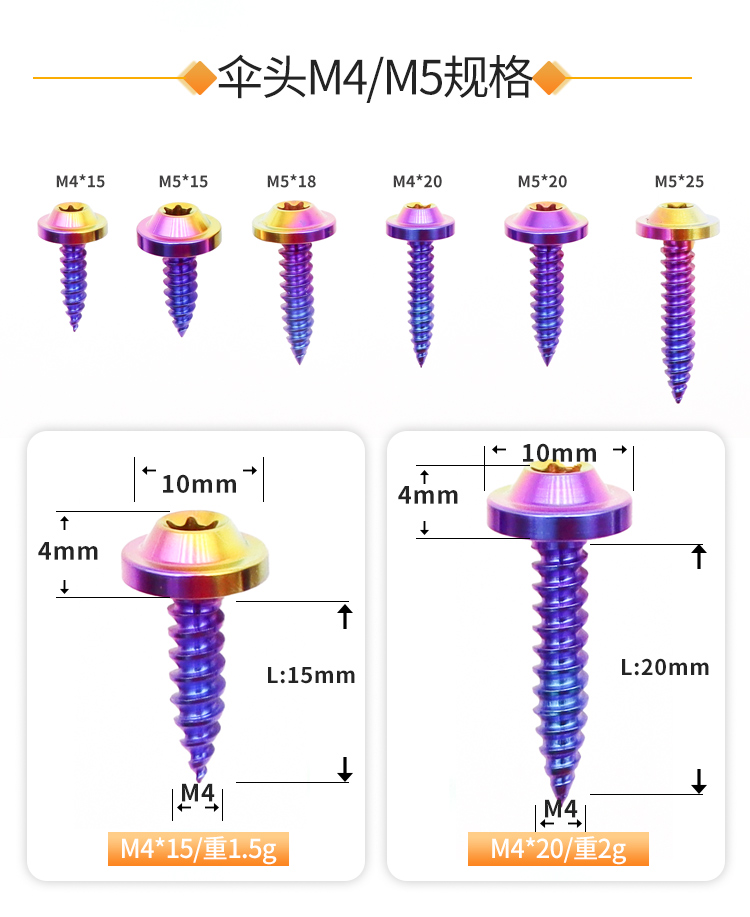 PYTITANS钛合金自攻丝摩托车pp件外壳修补螺丝