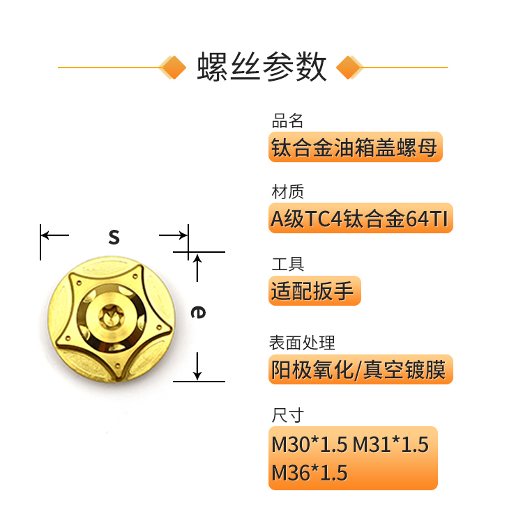 PYTITANS钛合金摩托车机油盖螺丝改装油盖螺丝