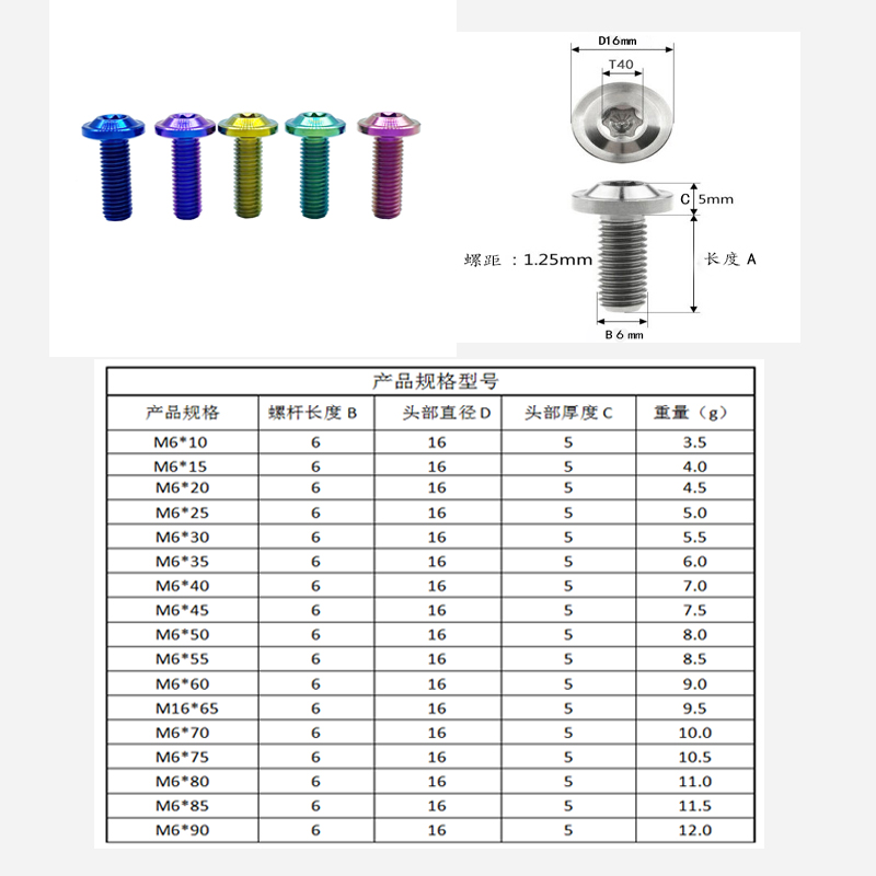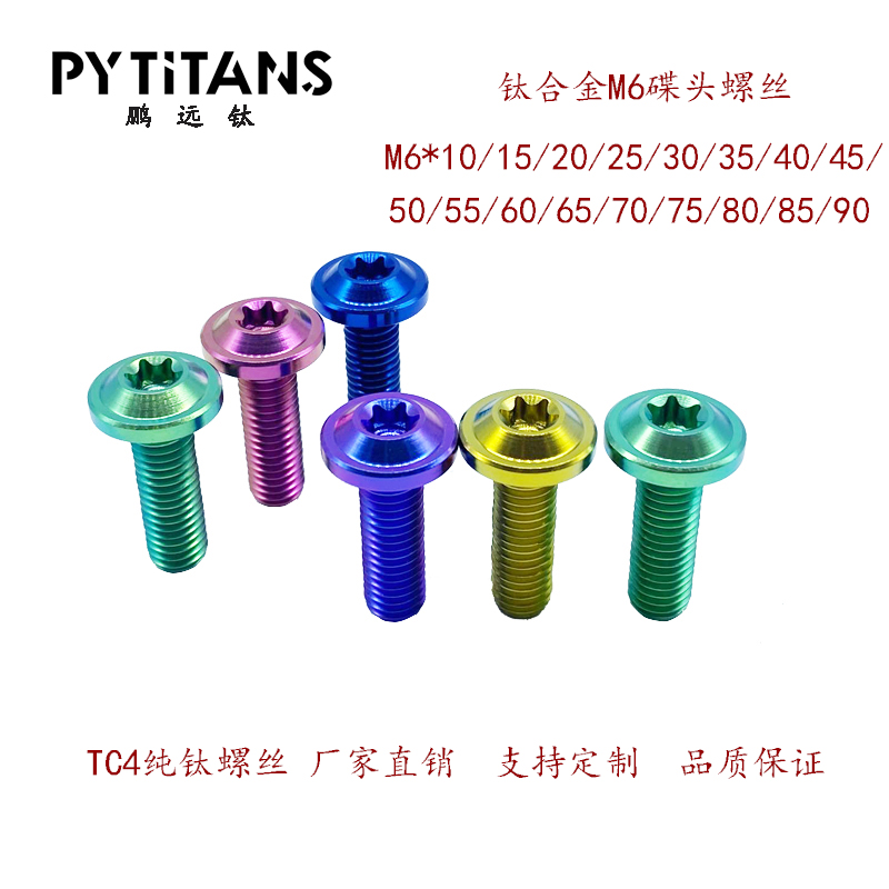 产品介绍: 大多数人认为螺丝就是一颗螺丝,把它看为是一件连接物体的金属零件,仅此而已,紧固件(螺栓或者螺丝)从机械和冶金上说是个复杂的五金零件。它们有公制的,ASE标准的(美国机动车工程标准)和其他标准。用到不同的材料、不同的螺纹类型(粗牙、细牙)、各种长度、有光杆部分和全螺纹的、有不同的头型、以及不同的图层等。 PYTITANS公司是一家专业而出色的有色金属(GR.1.2.3.4.5.7.9.12)标准件和钛制品特别定制加工的企业,创建于2003年,2005年开始就通过了IS09001-2000认证,经过了10多年的经验积累,现在拥有自己的专利、商标的品牌。 PYTITANS Bolts (鹏远钛) 重量轻、性能高、超硬、超耐磨、超耐腐蚀、超防松,级别可以达到标准8.8级、10.9级以上。重量只有同等刚螺丝的57%。产品应用在自行车、摩托车、汽车、赛车、游艇、体育、电子、制药、石油、冶金、化工、海水淡化、海洋工程、建筑等行业!PYTITANS SuperTi Bolts 螺丝背后是靠专业的研发团队和先进的生产技术作为支撑,更重要的是我们对钛的热爱。 钛合金螺丝 Ti — 6A1—4V 钛合金材质 — 热处理 — CNC 机加螺丝
