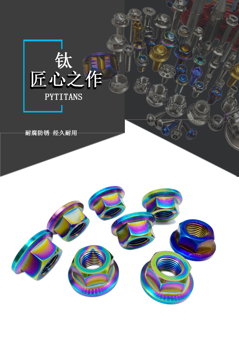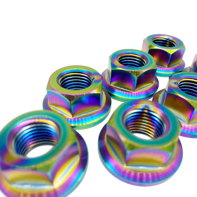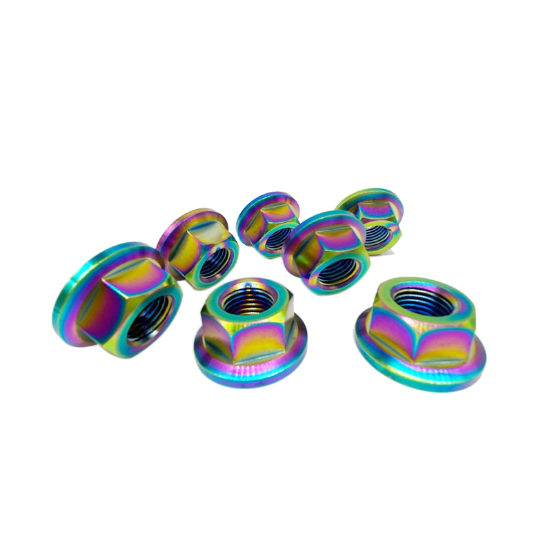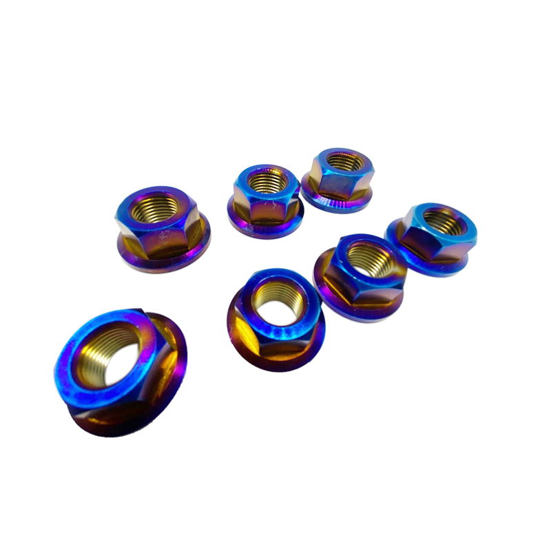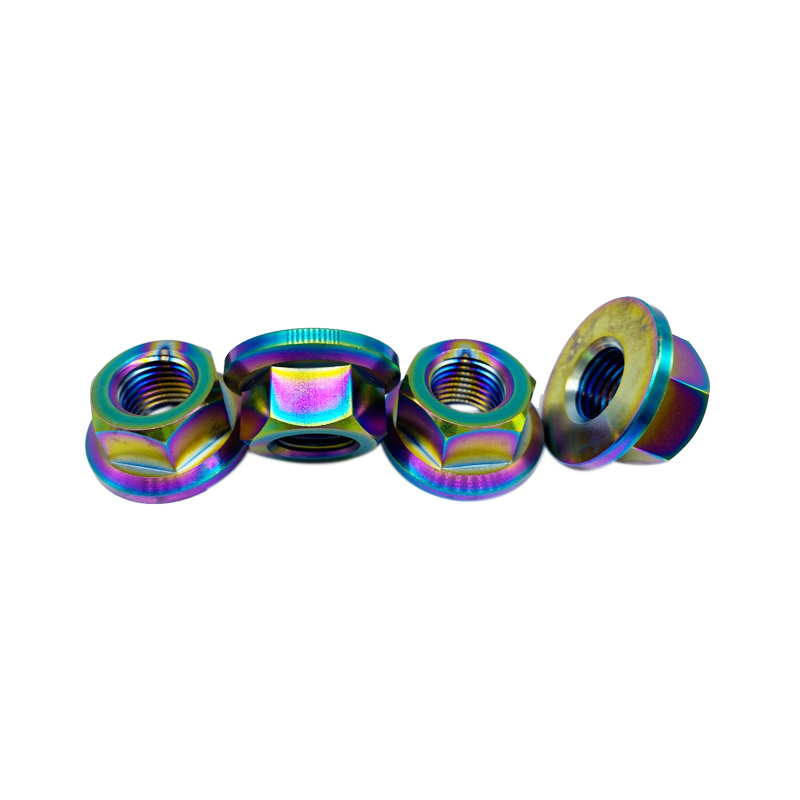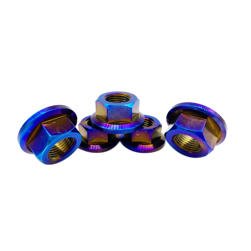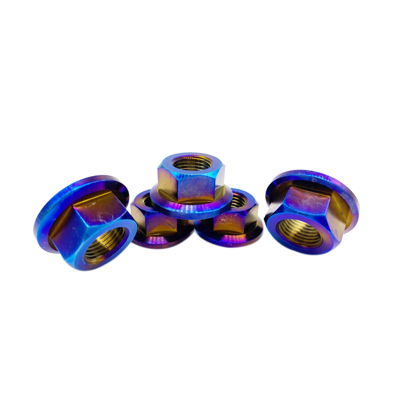 厂家直供 TC4钛合金防腐蚀六角法兰螺母 烧蓝色 炫彩色