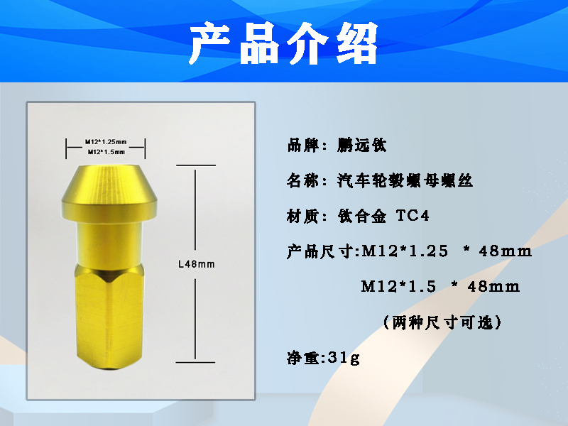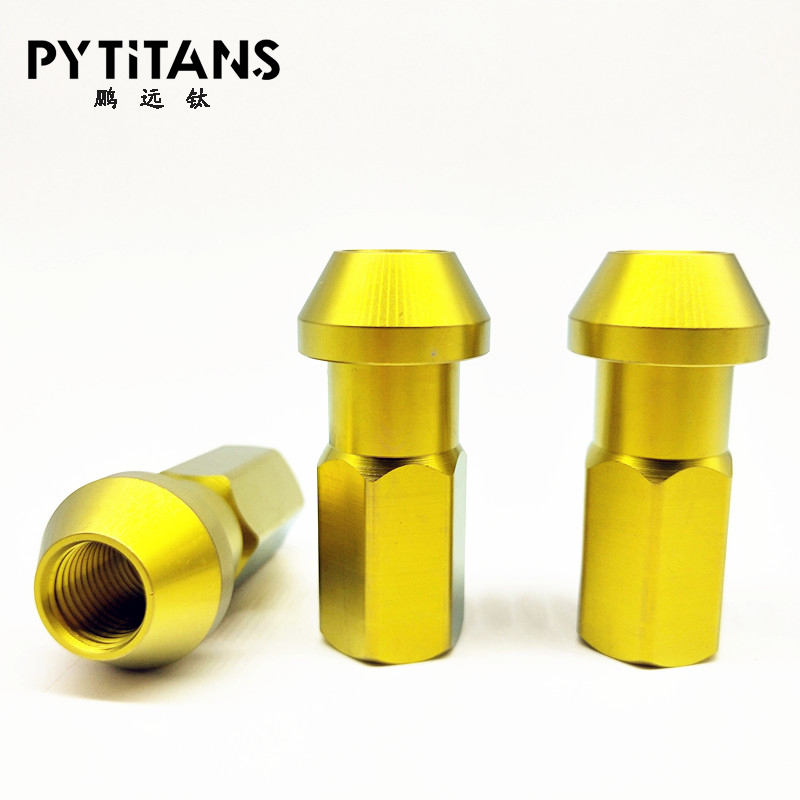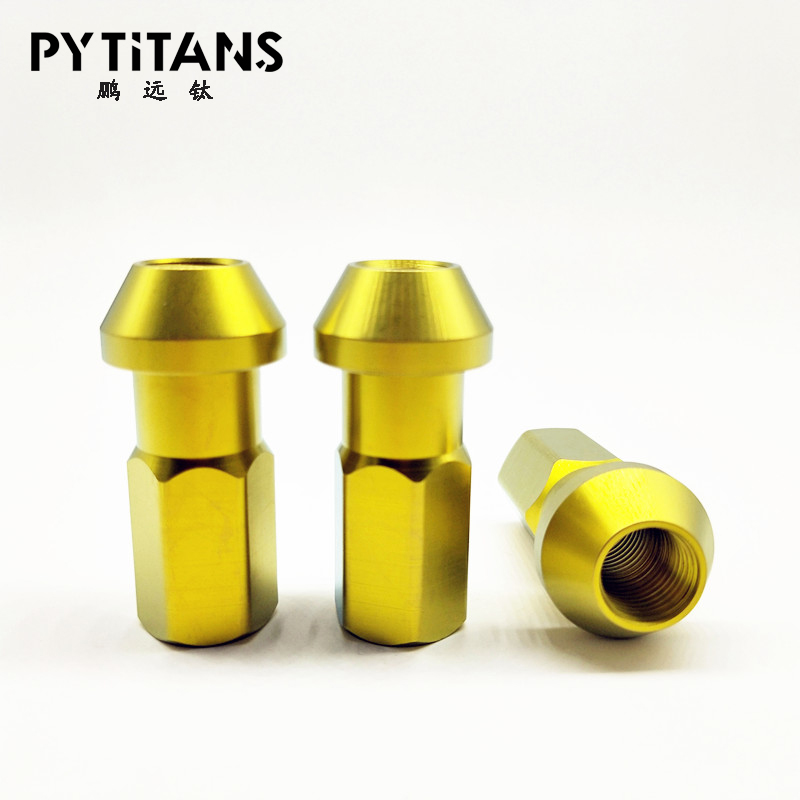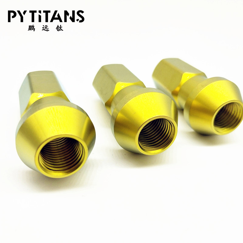【厂家直销】钛合金汽车轮毂螺母 金色 彩虹色汽车螺母 定制生产