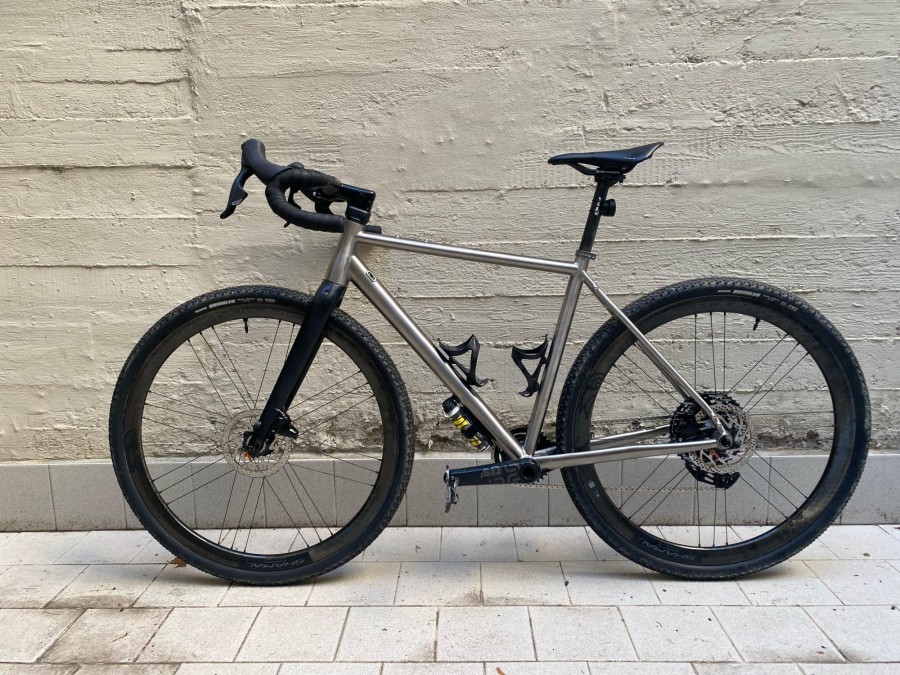 有些钛制车架使人感到摇摆, 这也许是使用 plane 管( 没有加 padded的,厚薄不能变化的管 ) 有关。或者虽使用高强度的钛合金,但没有用薄的管等也有关系。 钛合金车架裸架设计 然而,当我们观察市面上的钛合金自行车时,不难发现,许多车架都选择了裸架设计,即未进行喷漆处理。这背后其实隐藏着几个值得探讨的原因。 首先,钛合金车架并非不能上漆。事实上,一些高端钛合金自行车品牌,如美国某品牌的钛合金自行车,就曾经尝试过在车架表面覆盖白色漆面。此外,像美国手工车架品牌和早期的公路钛架,也都采用了喷漆设计。这些例子说明,钛合金车架是可以进行喷漆处理的。