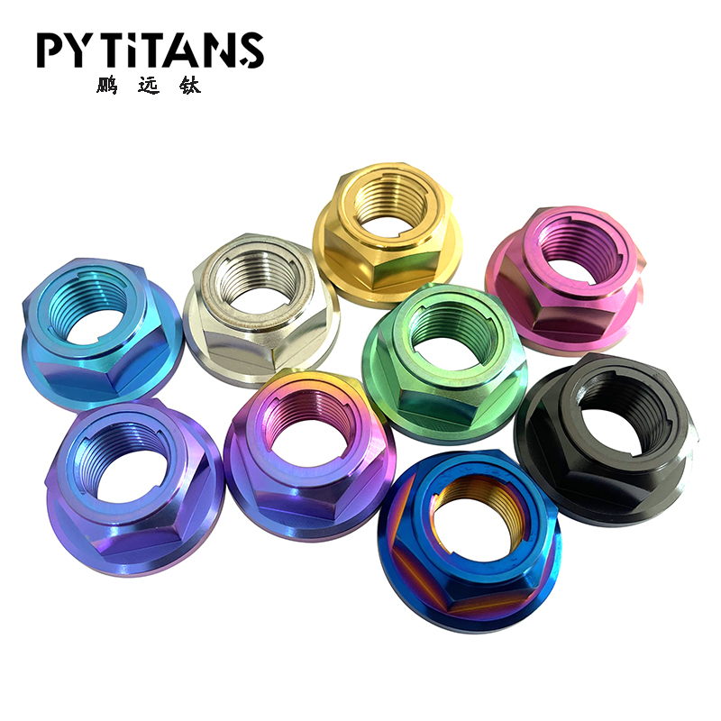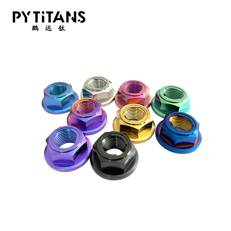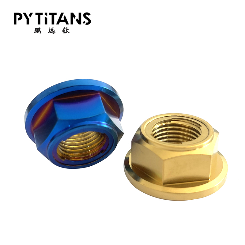 3. 自由旋转型 · 法兰面螺母:带有一个宽大的法兰盘,可以增大接触面积,分散压力,减少松动。通常与其他锁紧机制(如尼龙圈)结合使用。 · 施必劳/碟形弹簧垫圈螺母:螺母底部集成一个碟形弹簧垫圈。拧紧时,弹簧被压平,产生持续的轴向张力,能有效补偿因振动和热胀冷缩引起的预紧力下降,防松效果极佳。 4. 双螺母 · 使用两个普通的钛合金螺母,一个作为主螺母拧紧,另一个作为锁紧螺母从顶部将其锁死。这是一种简单可靠的机械锁紧方法,但重量和空间占用较大。